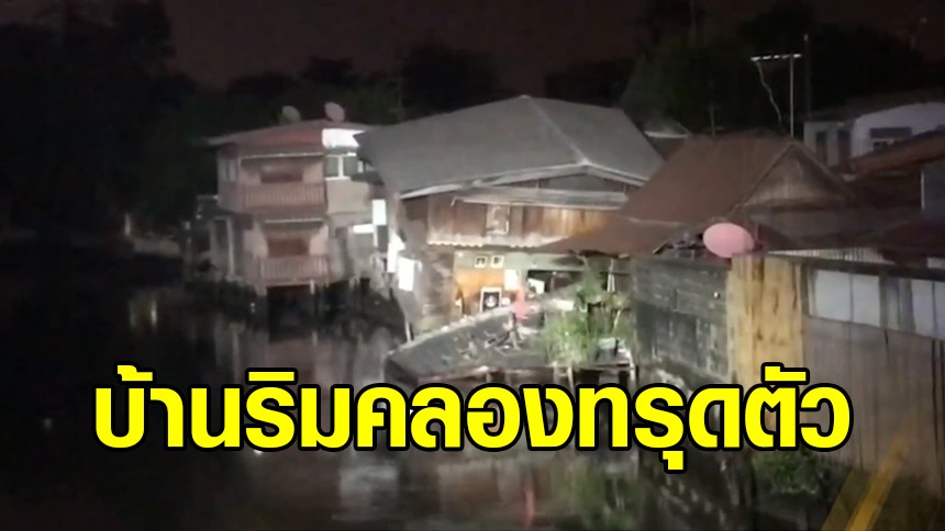 จรัญสนิทวงศ์ ระทึกกลางดึก บ้านไม้ริมคลองมอญ ทรุดตัวเสียหาย 2 หลัง คาดน้ำเซาะตลิ่งพัง โชคดีเจ้าของไหวตัวทัน