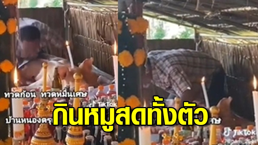 ตะลึง! ทวดก้อน สิงร่างลูกหลานกินหมูสดทั้งตัว ลากไส้เลือดเปรอะปาก