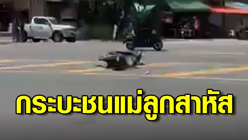 แม่ลูกขี่จักรยานยนต์กลับจากงานวันเด็ก ถูกกระบะชนบาดเจ็บสาหัส