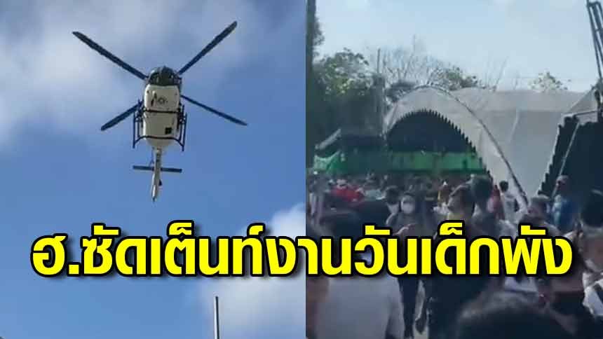 ฮ.บินแจกขนมงานวักเด็ก พัดเต็นท์พัง ผปค.-เด็กหนีตายวุ่น เจ็บ 10 ราย