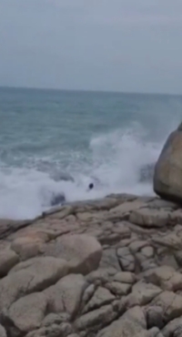 เผยนาทีชีวิตหนุ่มเมียนมาฝืนคำเตือนห้ามนั่งบนโขดหินถูกคลื่นซัดหายไปในทะเล