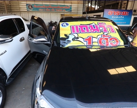 เต็นท์รถจัดโปรโมชั่นแปลก “ออกรถแถมวัว”