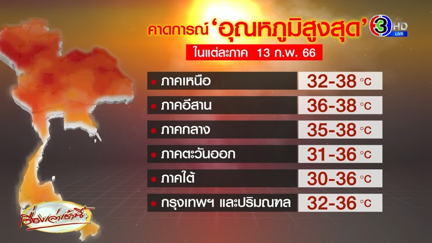 ร้อนทั่วไทย! อุตุฯ เตือน 14-17 ก.พ. ไทยตอนบนเจอฝนฟ้าคะนอง-ลูกเห็บ