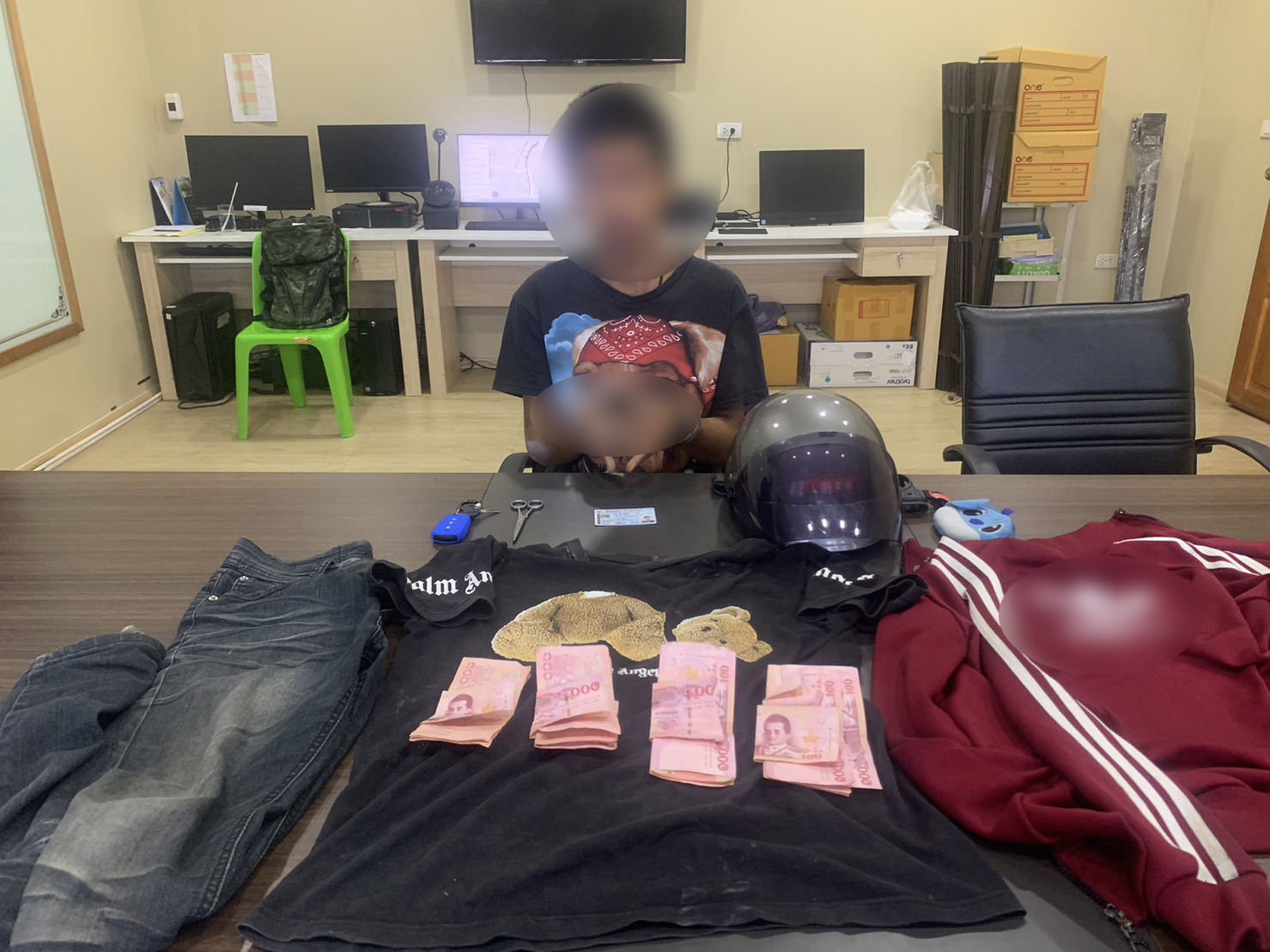 พันตำรวจเอกดำรงศักดิ์ สว่างงาม รองผู้บังคับการตำรวจนครบาล 8 เปิดเผยว่า ตำรวจได้รับแจ้งจากพนักงานภายในร้านสะดวกซื้อว่ามีชายอายุประมาณ 20 ปี ใส่เสื้อยืดสีน้ำเงิน กางเกงขายาว สวมหมวกกันน็อก ขี่จักรยานยนต์สีแดง มาที่ร้านสะดวกซื้อแห่งหนึ่งย่านประชาอุทิศ 113 ในเวลาประมาณ 04.00 น. โดยเข้ามาเลือกซื้อสินค้าภายในร้าน จากนั้นระหว่างที่รอจ่ายเงินที่เคาน์เตอร์ พร้อมกับบอกพนักงานขอเงิน 500-1,000 บาท แต่พนักงานไม่ให้ จึงออกจากร้านขับรถหลบหนีไป