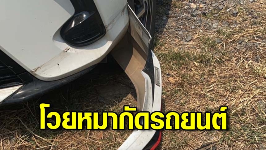 หญิงโวยจอดรถไว้หน้าหอพัก ถูกหมาเพื่อนบ้านออกมากัดกันชนจนรถเสียหาย