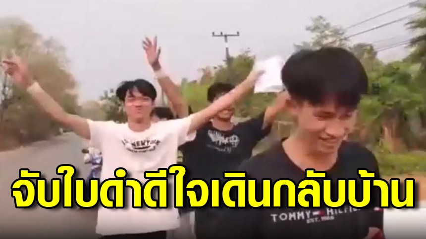 5 หนุ่มดีใจโลกแทบแตก จับได้ใบดำ รอดเกณฑ์ทหาร พากันแก้บนเดินกลับบ้าน 7 โล