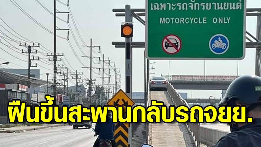 ขับขึ้นไปได้ไง! เก๋งขับขึ้นสะพานกลับรถสำหรับจักรยานยนต์