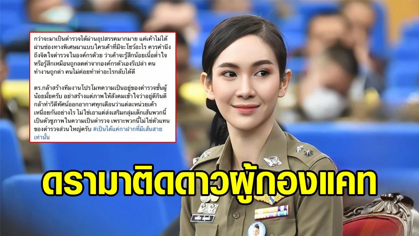 เพจเพื่อนตำรวจแฉ นักร้องลูกทุ่งหญิง จาก ส.ต.ต หญิง สู่ ร.ต.อ.หญิง โดยใช้เวลา 4 ปี อ้างหลักสูตร กอส. พร้อมตั้งคำถาม ตำรวจคนอื่นเป็นประทวนร่วม 10 ปี ยังไม่ติดดาว แซะตำรวจ นามสกุลดังๆ ทั้งนั้น แอ๊คเท่ สวยหล่อ อัพไอจี - ติ๊กตอก โพสต์เฟซอวดตัวเอง ผู้บังคับบัญชาก็ชื่นชมว่า เป็นหน้าเป็นตา