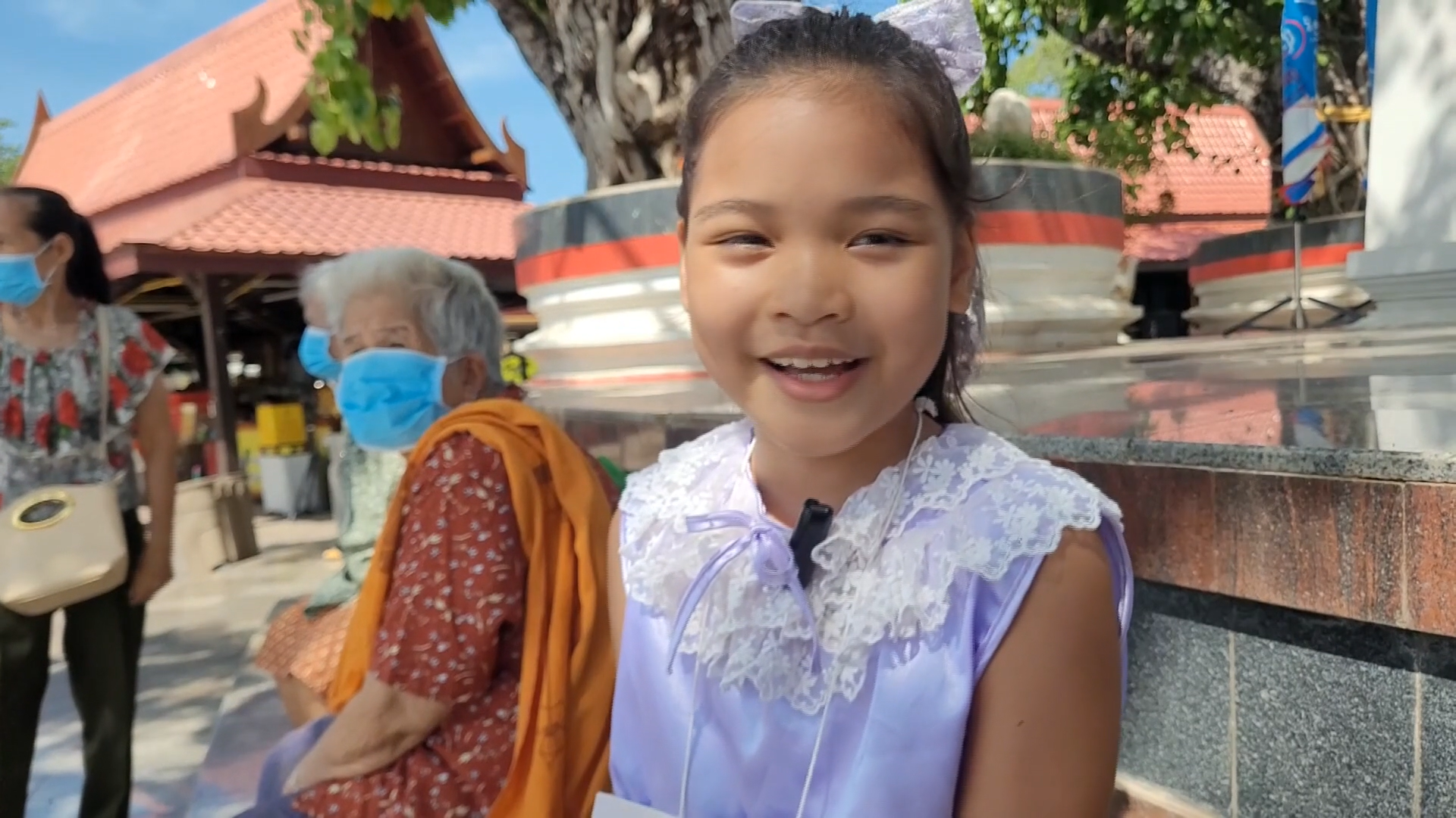 ล่าสุดวันนี้ผู้สื่อข่าวเดินทางไปพูดคุยกับน้องขนุน ด.ญ.เอกสุรีย์ ไกด์จิ๋วที่วัดพระศรีรัตนมหาธาตุ วรมหาวิหาร หรือวัดใหญ่ ซึ่งน้องขนุน กำลังนั่งเล่นอยู่กับคุณแม่คือ นางยุพาวรรณ อายุ 42 ปี โดยน้องขนุน ได้กล่าวกับผู้สื่อข่าวว่า รู้สึกดีใจที่ได้พูดคุยภาษากับ คุณลุงพิธา ลิ้มเจริญรัตน์ โดยคุณลุงพิธา ได้ถามเรื่องประวัติความเป็นมาของพระพุทธเจ้าเข้านิพพาน ซึ่งตนเองบางครั้งก็ไม่เข้าใจศัพท์เกี่ยวกับพระพุทธเจ้ามากนัก ทำให้พูดสับสนนิดหน่อย คุณลุงพิธา ก็ได้แนะนำให้ฝึกพูดบ่อยๆ จะได้คล่องแคล้ว ส่วนการภาษาอังกฤษตนเรียนอยู่ที่บ้านผ่านยูทูป ไม่ได้เข้าโรงเรียน ซึ่งเรียนแบบ Home School โดยมีแม่เป็นผู้สอน