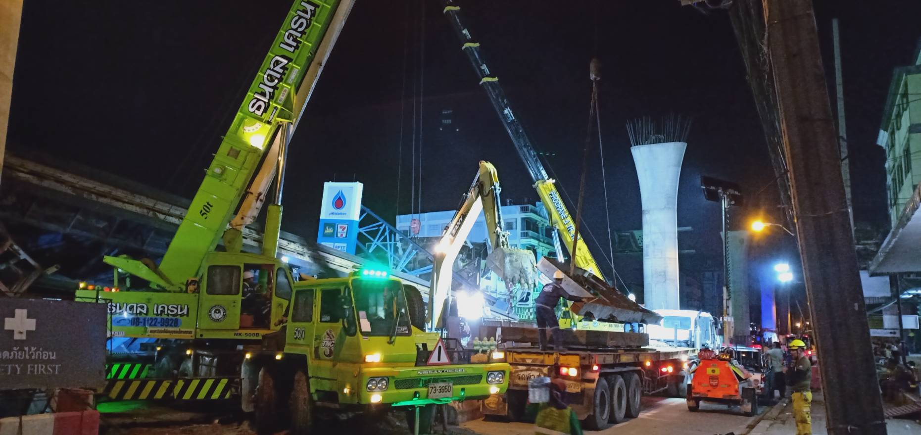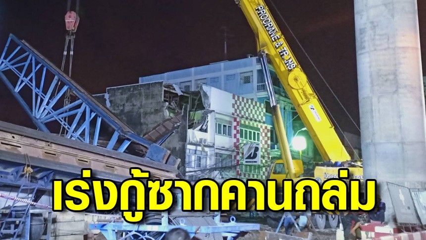 รถเครน 200 ตัน เร่งกู้ซากทางยกระดับถล่ม ขณะที่พบผู้เสียชีวิตเพิ่มอีก 1 คน