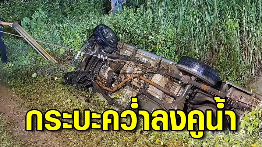 กระบะขับรถเจอซอยทางตัน คาดจีพีเอสพามาผิดรถไหลลงคูน้ำ คนขับดับสลด