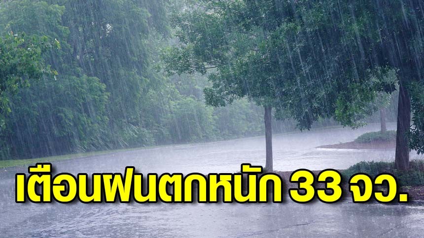 กรมอุตุฯ เตือน 33 จังหวัด มีฝนตกหนักบางแห่ง ส่วนกทม.ฝนฟ้าคะนอง 60%