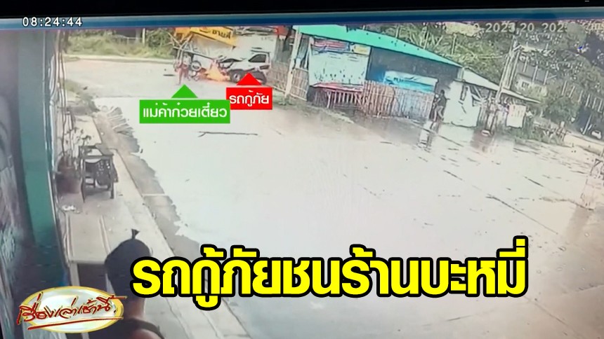 วานนี้ (2 ต.ค. 66) ผู้สื่อข่าวรายงานว่า เมื่อเวลา 14.00 น. ของวันที่ 30 ก.ย. ที่ผ่านมา ภาพกล้องวงจรปิดได้บันทึกภาพเหตุการณ์ ขณะที่นางสาวมันทนา หมีแก้ว หรือคุณเจน อายุ 36 ปี เจ้าของร้านเสริมสวย วิ่งหนีตายจากอุบัติเหตุรถยนต์กู้ชีพ ของเทศบาลตำบลทากาศ อำเภอแม่ทา ซึ่งมีนายอนุรักษ์ อากาศอายุ 43 ปี เป็นคนขับ ได้ขับแหกโค้งชนเสาหลักทางหลวง ก่อนจะพุ่งชนเก๋งของชาวบ้านที่จอดอยู่ และร้านหมี่เกี๊ยว ทำให้ทั้งคนขาย และลูกค้า วิ่งหนีตายด้วยความตกใจ ส่งผลให้รถยนต์ทั้งสองคัน และเพิงร้านก๋วยเตี๋ยว พังยับเยิน