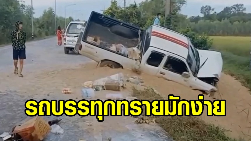 รถบรรทุกทรายกลัวด่าน มักง่ายเททรายทิ้งบนถนน กระบะชนเจ็บยกครัว 3 ราย