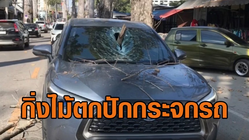 นาทีระทึก! กิ่งยางนายักษ์ยาวกว่า 1 เมตร ตกปักทะลุกระจกรถเก๋งสาวแบงก์ เฉียดศีรษะหวิดดับ