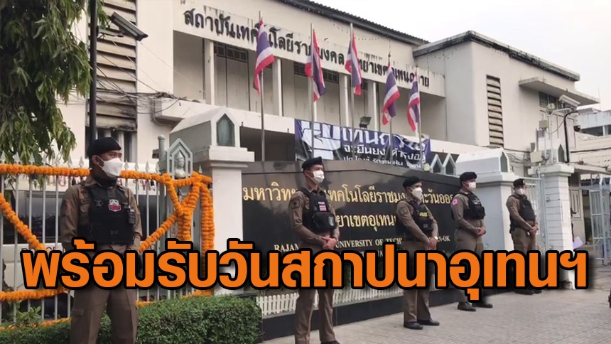 ส่วนบรรยากาศหน้ามหาวิทยาลัยเทคโนโลยีราชมงคลตะวันออก วิทยาเขตอุเทนถวาย เมื่อเวลา 15.15 น. เจ้าหน้าที่ตำรวจ ยืนเรียงแถว ตลอดด้านหน้ารั้วของอุเทนถวาย เพื่อดูแลความปลอดภัย ก่อนที่จะมีงาน บลูเดย์ หรืองานครบรอบสถาปนาอุเทนถวายในวันพรุ่งนี้ ซึ่งได้เตรียมกำลังตำรวจไว้ 2 กองร้อย (300 นาย) พร้อมสุนัขตำรวจคอยลาดตระเวณดูแลสิ่งแปลกปลอมต้องสงสัยที่จะเกิดเหตุ รวมถึงสื่อมวลชนปักหลักรอติดตามสถานการณ์