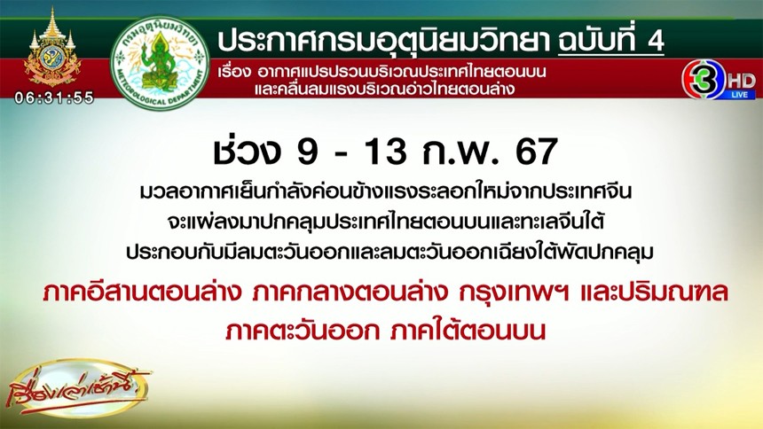 เรื่อง อากาศแปรปรวนบริเวณประเทศไทยตอนบนและคลื่นลมแรงบริเวณอ่าวไทยตอนล่าง