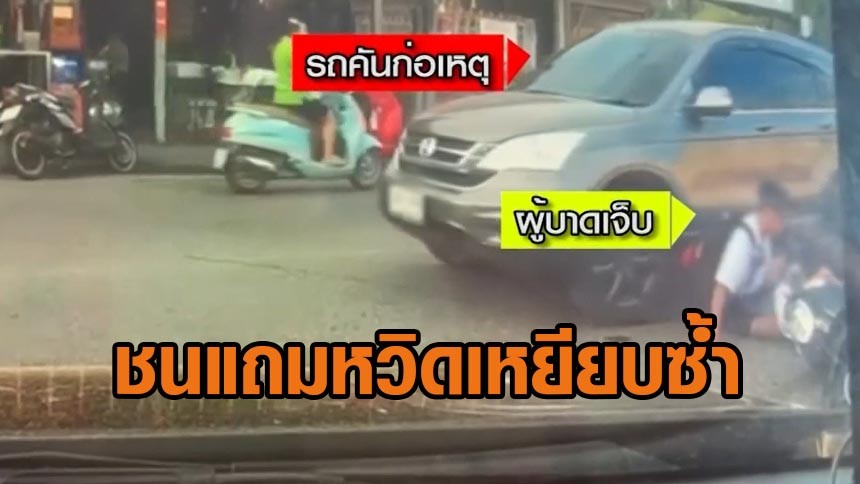 เก๋งหักรถกะทันหัน ชน จยย. 2 นักเรียนล้ม ซ้ำไม่ยอมจอด หวิดเหยียบซ้ำ