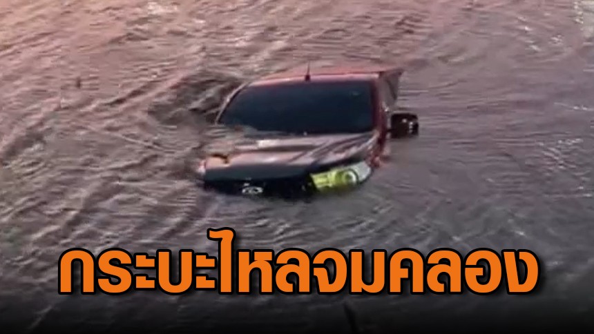 สองผัวเมียน้ำตานองหน้า กระบะไหลจมคลอง จอดรถหาปลาไปทำกินหวังประหยัดเงิน