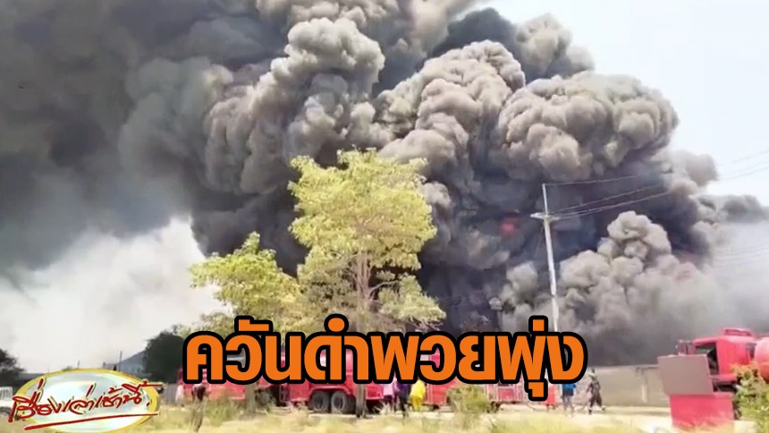 ท้องฟ้ากลายเป็นสีดำ! เพลิงไหม้โกดังเก็บวัตถุดิบ ผลิตที่นอนยางพารา ระดมรถดับเพลิง 50 คัน ถึงสกัดอยู่