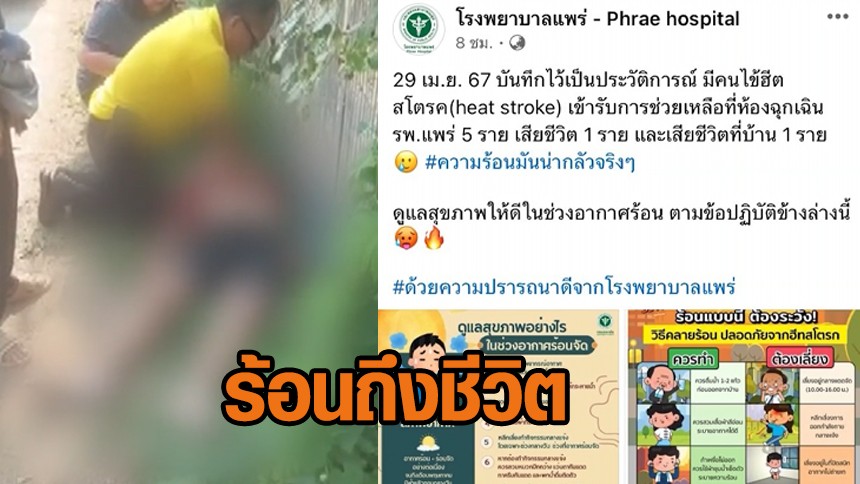 ร้อนจนน่ากลัว 'รพ.แพร่' เผยวันเดียว เจอ 'ฮีทสโตรก' 5 ราย สลดดับ 2 ราย