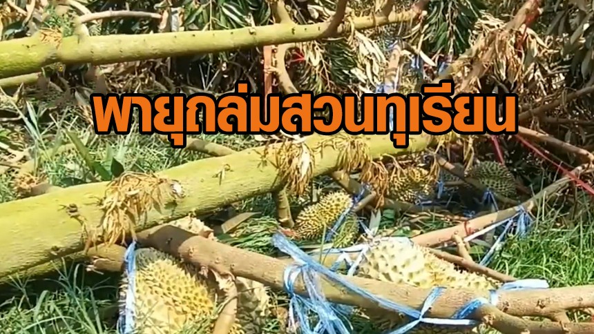ซึ่งทำให้มีฝนตกหนัก และลมกระโชกแรง นานเกือบ 1 ชั่วโมง ส่งผลให้ต้นทุเรียนโค่นล้ม และลูกทุเรียนที่กำลังเติบโตร่วงหล่นเกลื่อนพื้นสวน เจ้าของสวนต้องระดมคนงาน ช่วยกันเก็บลูกทุเรียนที่ร่วงหล่นมาเก็บรวบรวมไว้ โดยไม่รู้ว่าจะทำอย่างไรกับลูกทุเรียนที่ร่วงหล่นเหล่านี้ เพราะเหลือเวลาอีกประมาณเกือบ 1 เดือน จึงจะสามารถตัดลูกทุเรียนส่งจำหน่ายตามท้องตลาด หรือส่งนายหน้ารับซื้อได้
