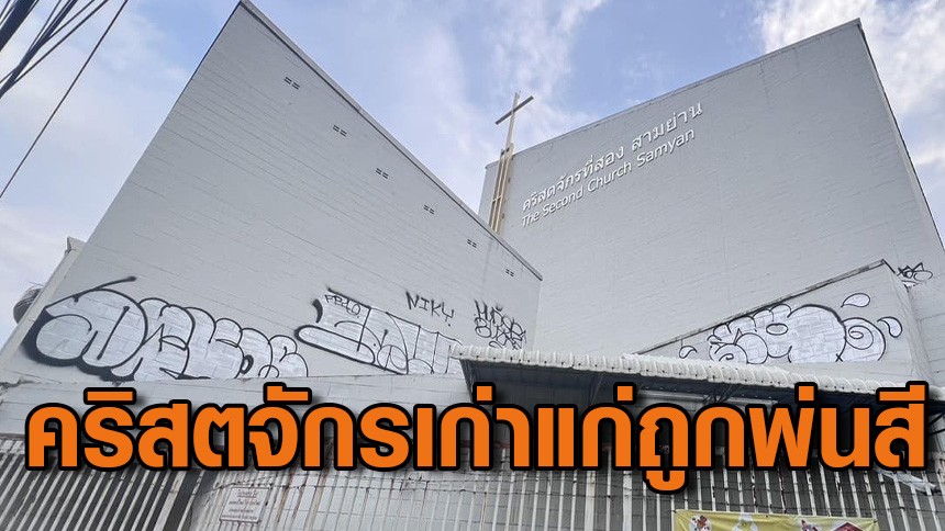 ไม่สมควร! มือดีพ่นสีใส่ “คริสตจักรที่สอง สามย่าน” อายุ 145 ปี สมาชิกชวนมาร่วมงานช่วยพัฒนา แถมย้ำมีกล้องวงปิดเห็นหน้าชัด