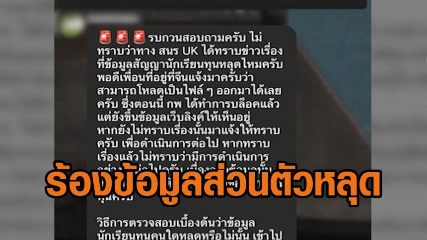 แท็กที่เกี่ยวข้อง นักเรียนทุนรัฐบาล ,นักเรียนทุนข้อมูลหลุด ,ข้อมูลส่วนตัวหลุด