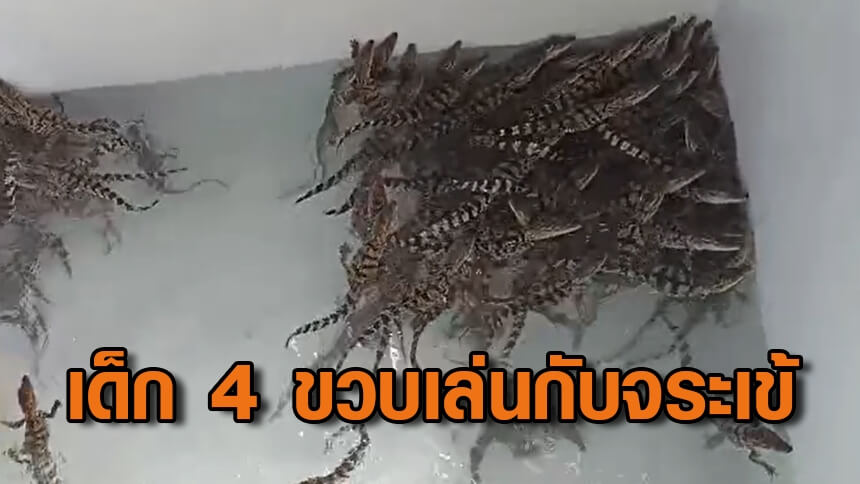โซเชียลฮือฮา แม่ปล่อยลูกสาว 4 ขวบ นอนเล่นกับจระเข้ 200 ตัว แม่แจงจระเข้ในคลิป อายุ 2-7 วัน ยังไม่มีฟัน