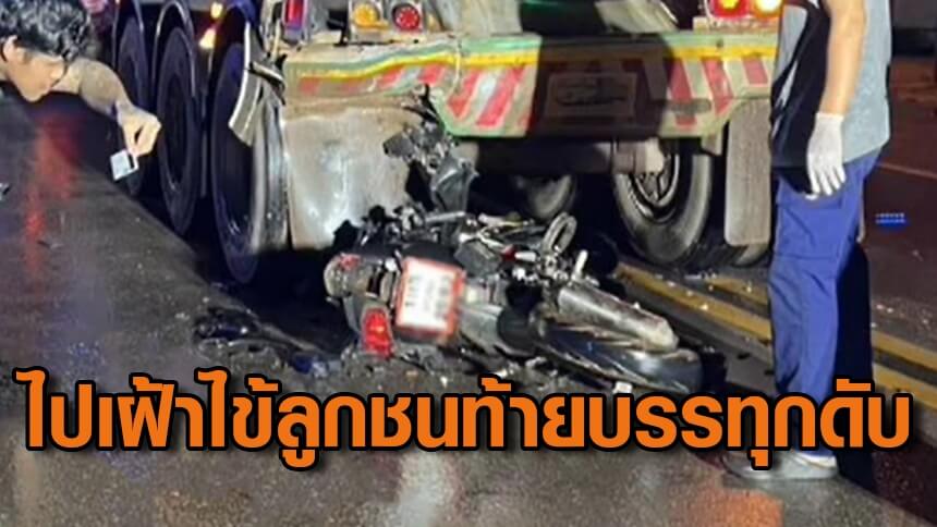 สลดใจ! พ่อฝ่าฝนไปเฝ้าลูกที่โรงพยาบาล ขี่ จยย.ชนท้ายรถพ่วงขับถอยหลัง เสียชีวิตคาที่ก่อนวันเกิดลูก 1 วัน