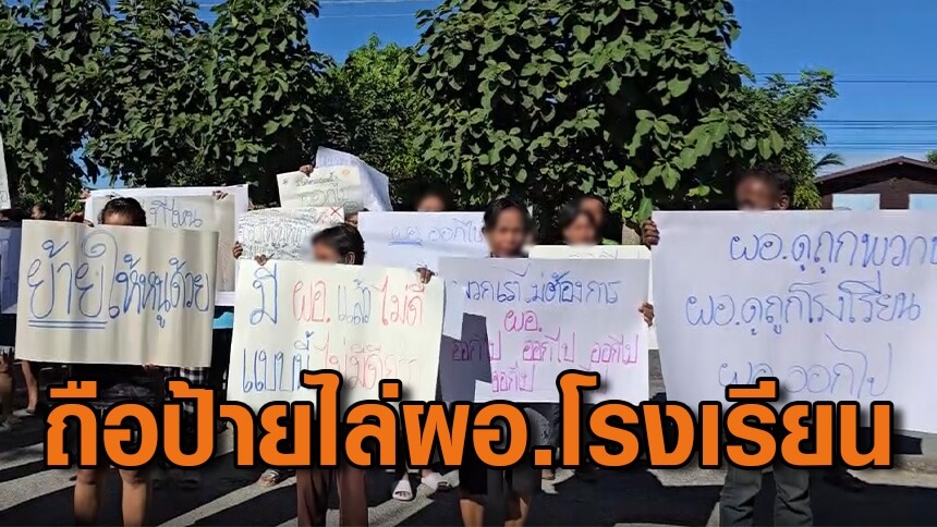 ผู้ปกครองถือป้ายฮือขับไล่ผอ.โรงเรียน ชอบพูดจาด้อยค่าครู-นักเรียน
