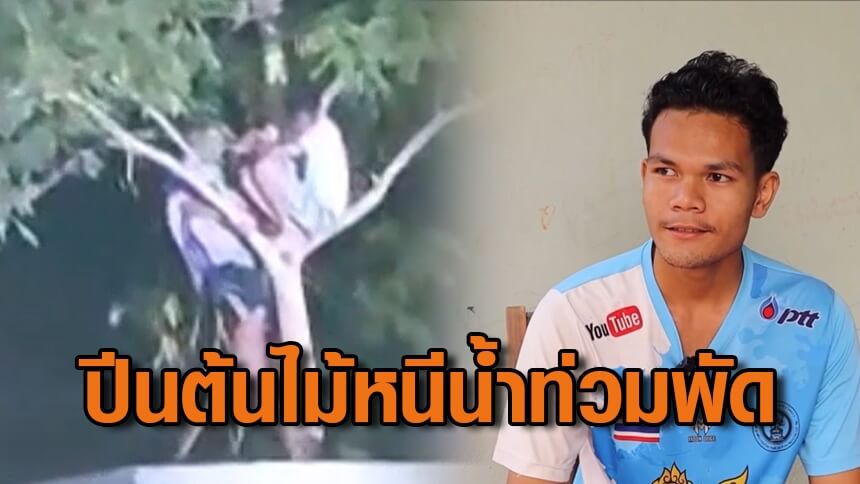เปิดใจนาทีระทึก 2 หนุ่มปีนต้นไม้หนีน้ำท่วมอุดรธานีพัดแรง