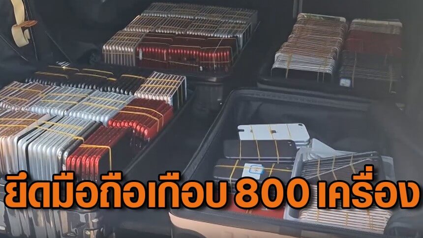 ตำรวจยึดโทรศัพท์เกือบ 800 เครื่อง มูลค่ากว่า 3 ล้านบาท คนขับสารภาพรับจ้างจากชาวจีน 2 หมื่นบาท แต่ไม่ทราบข้างในเป็นอะไร
