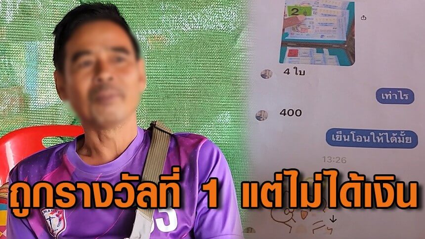 ชายวัย 50 ร้องซื้อลอตเตอรี่ออนไลน์ ถูกรางวัลที่ 1 สุดท้ายพ่อค้าหนีหาย เจ้าตัววอนส่งรางวัลคืน