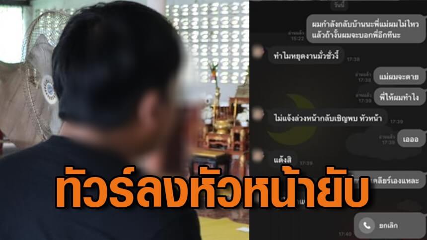 ผู้ใช้เฟซบุ๊กรายหนึ่ง โพสต์ข้อความพร้อมแนบบทสนทนาระหว่างตนกับหัวหน้างานระบุแคบชัน “แม่กูกำลังจะตาย” พร้อมอีโมจิแสดงความรู้สึกโมโห พร้อมภาพแชตระบุข้อความว่า