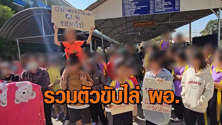 ผู้ปกครอง-นักเรียน สุดทน! รวมตัวขับไล่ ผอ. เจ้าตัวแอบหนีออกหลังโรงเรียน