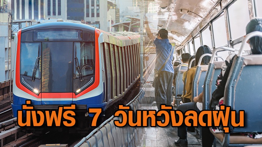 นายสุริยะ จึงรุ่งเรืองกิจ รองนายกรัฐมนตรีและรัฐมนตรีว่าการกระทรวงคมนาคม แถลงด่วนถึงข้อสั่งการนายกรัฐมนตรี ให้กระทรวงคมนาคมและส่วนราชการอื่นๆ สนับสนุนการแก้ไขปัญหาฝุ่นควันในกรุงเทพมหานคร ว่า ปัญหาฝุ่น PM2.5 เป็นเรื่องที่นายกรัฐมนตรีเป็นห่วงอย่างมาก โดยตั้งแต่วันพรุ่งนี้ เป็นต้นไป (25-31 ม.ค.) จะให้ประชาชนขึ้นรถรถไฟฟ้าฟรีทุกสาย รวมถึงรถขนส่ง ขสมก.ฟรี ซึ่งตนได้ประสานไปยังผู้ประกอบการทั้งกลุ่มบีทีเอสและ BEM ว่ารัฐบาลจะมีมาตรการนี้ โดยจะมีการขออนุมัติงบกลางเพื่อมาชดเชยรายได้ให้กับผู้ประกอบการที่สูญเสียตามค่าเฉลี่ย 7 วัน ประมาณ 140 ล้านบาท