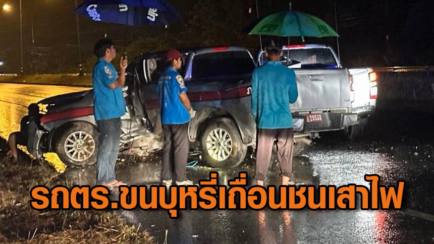 สิบตำรวจเอกขับรถตำรวจขนบุหรี่เถื่อน ซิ่งชนเสาไฟ เจอกว่า 300 คอตตอน