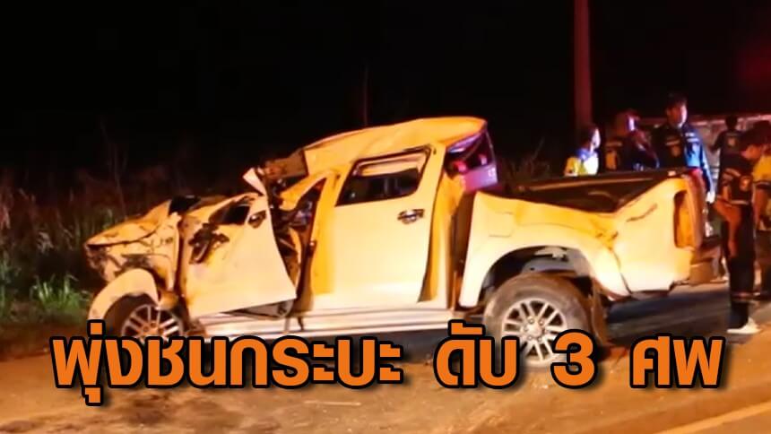 เมียท้องแก่ร่ำไห้ กระบะเสียหลักพุ่งข้ามเกาะกลางถนนชนกับรถกระบะตู้ทึบรถพังยับ ดับสลด 3 ศพ