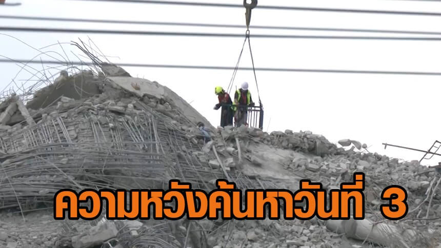 เดินหน้าปฏิบัติการค้นหาผู้สูญหาย ตึก สตง.ถล่ม ระดมกู้ภัย สุนัข K9 หุ่นยนต์ ค้นหาวันที่ 3 ล่าสุด พบผู้เสียชีวิต 11 ราย บาดเจ็บ 9 ราย และอยู่ระหว่างติดตาม 76 ราย ขณะที่ญาติยังมีความหวัง