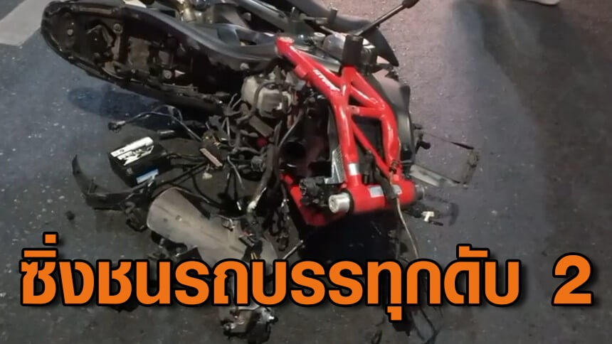 หนุ่มสาวขี่บิ๊กไบก์ซิ่งเสยท้ายรถบรรทุก กระเด็นกระแทกราวเหล็กดับสลดคู่