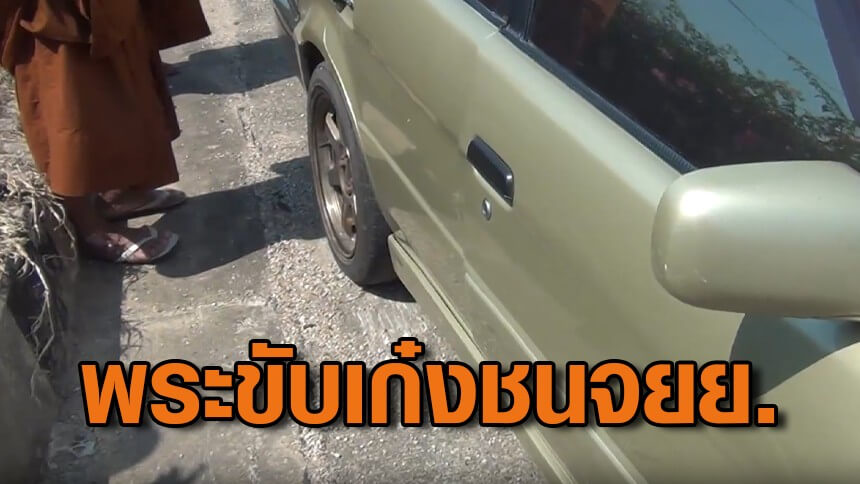 พระขับเก๋งไปร่วมงานบุญ เจอสาวขี่จักรยานยนต์ตัดหน้า ชนกันเจ็บ