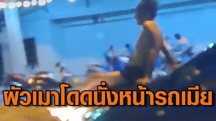 ผัวเมาทะเลาะเมีย ถอดเสื้อกระโดดเกาะนั่งฝากระโปรงรถ