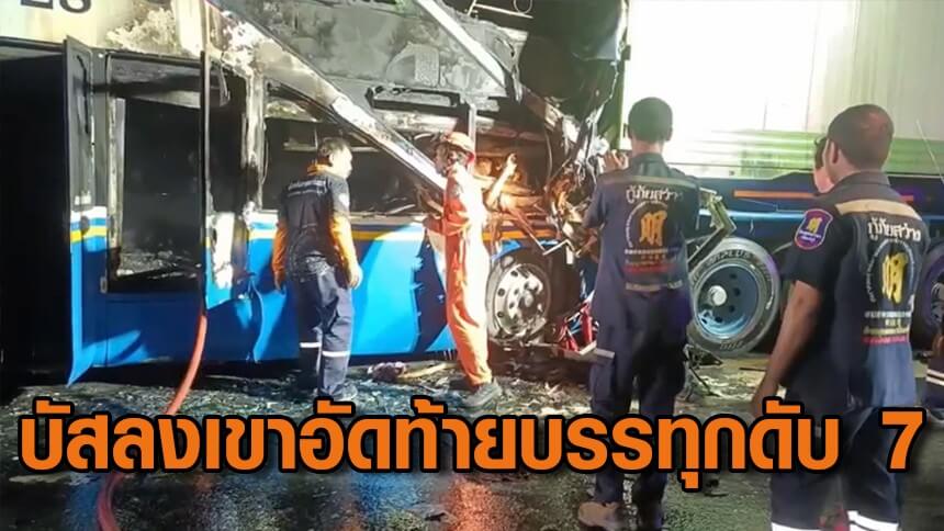 รถบัส “ระยอง - หนองคาย” พุ่งลงเขาโทน เสยท้ายรถบรรทุก คนขับ-ผู้โดยสารดับสลด 7 เจ็บกว่า 20