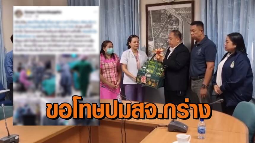 ตัวแทนพรรคเพื่อไทยอุดรฯ หอบกระเช้าเข้าให้กำลังใจและขอโทษหมอพยาบาลห้องผ่าตัด หลัง สจ.กร่างถ่ายรูปในห้องผ่าตัด เจอเบรกขอร้องห้ามถ่ายรูป โชว์พาว “รู้ไหมว่าผมเป็นใคร” ย้ำ สจ.กร่างถูกพรรคขับออกแล้ว