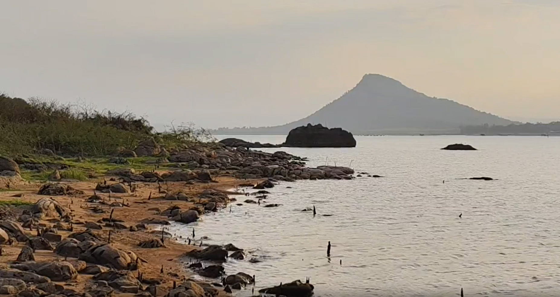 กำแพงหินยักษ์-หาดทรายโผล่เขื่อนมูลบน หลังปริมาณน้ำลดต่ำต่อเนื่อง