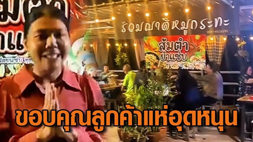 เจ้าของร้านปลื้ม ขอบคุณลูกค้าแห่อุดหนุนแน่นร้าน หลังโดนลูกค้าเหมาร้านหมูกระทะเท ตอนนี้คิวจองโต๊ะยาว 3 วันแล้ว
