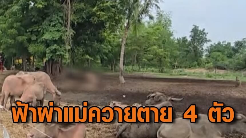 ฟ้าผ่า 4 แม่ควายตั้งท้องตาย สุดเวทนา ลูกควายที่ยังไม่หย่านมเฝ้าแม่มันไม่ยอมห่าง