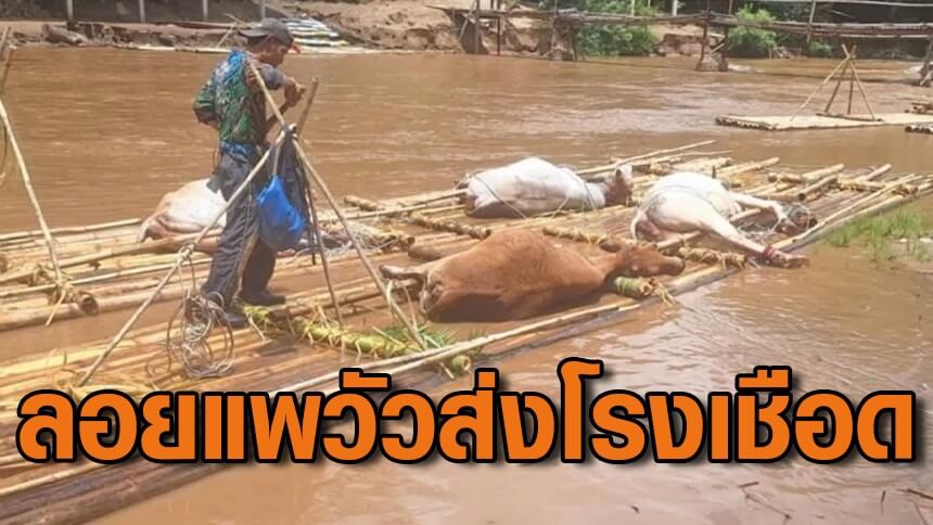 เจ้าของจำใจ มัดวัว 7 ตัว ล่องแพส่งขายโรงเชือด หลังวัวทำลายแปลงข้าวเสียหาย