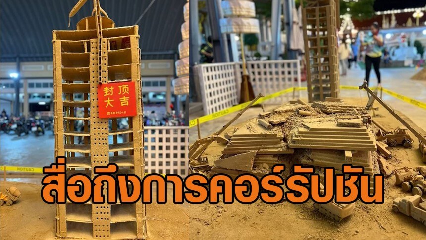 เหมือนเป๊ะ! ชาวเน็ตฮือฮา ก่อพระเจดีย์ทรายตึก สตง.ถล่ม สื่อถึงการคอร์รัปชัน